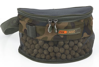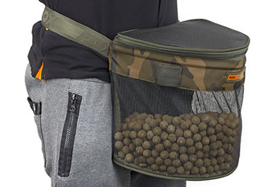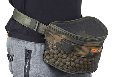 Banane d’amorçage Fox Boilie Bum Bag finition camouflage exclusive de Fox parfait pour les sessions courtes ou amorçages préalables, permettant de transporter appâts, tube et fronde.