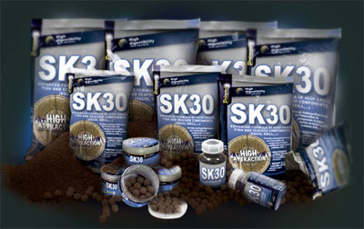 Formulée à partir de matières premières carnées de haute qualité reconnues pour leurs principes attractifs tels que: farines de poissons séchées à base température, extraits solubles de protéines de poissons, extraits marins, … associés à des composés attractifs solubles provenant du calamar ainsi que du krill, la « SK 30 » possède un profil en acides aminés ainsi qu’en acides gras permettant de la classer comme étant un appât indispensable dans la sélection de gros poissons sur un poste.