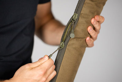 Les Housses Individuelles Korda Compac offrent une protection complĂšte pour vos cannes, mĂȘme avec un anneau de 50mm et un grand moulinet.