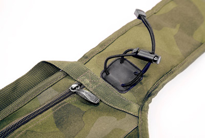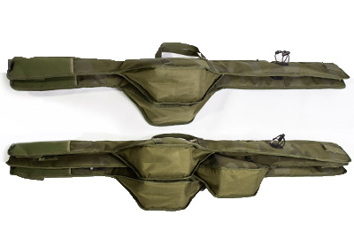 Les housses sont Ă©quipĂ©es d’un manchon Ă leurs bases et d’une sangle Ă l’autre extrĂ©mitĂ© permettant de fixer une autre canne a l’extĂ©rieur ou un manche d’épuisette.