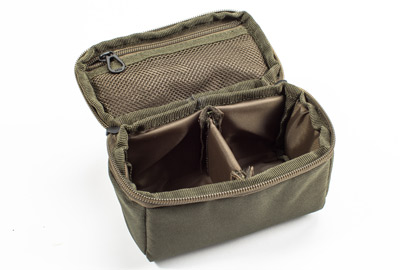 Trousse zippée avec pochette en maille sous le couvercle et diviseur central amovible.