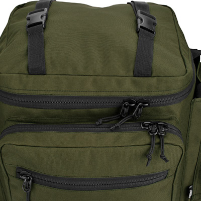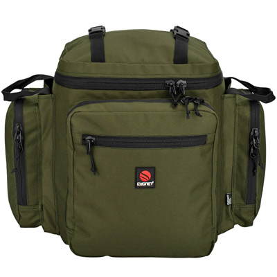 Il comporte une grande poche avant zippée pouvant accueillir une tackle box ou des accessoires, une poche supplémentaire zippée sur le devant, d’autres sur les deux côtés et à l’intérieur du couvercle ainsi qu’une grande poche à l’intérieur du compartiment principal.