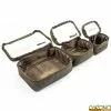 Trousse à booster avec finition camouflage exclusive Fox conçue pour le stockage des appâts secs et/ou trempés dans les liquides de votre choix. Espace de rangement contenant 8 pots Fox.